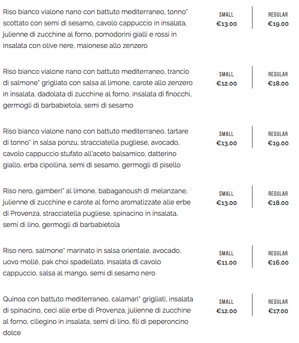 Pre-Workout Consigliato – Qualsiasi Bowl presenta un bilanciamento adeguato dei tre macro-nutrienti. Anche le proposte “Open Toast” rappresentano una valida alternativa pre-workout.